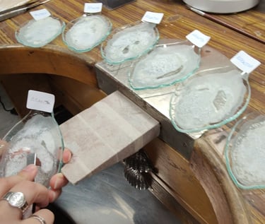 A través de un proceso de conservación único, transformamos la leche en un material sólido que es resistente y apto para ser incrustado en joyas de alta calidad. Este proceso que conlleva varios días en una sala aclimatada donde sacamos varias muestras de cada persona, para conseguir la mejor textura y color posible, las cuales guardamos para futuras piezas o posibles reparaciones.